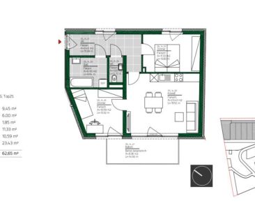 Überblick: Wohnung: ca. 35,06 m² + Balkon: 6,63 m² 1 W...