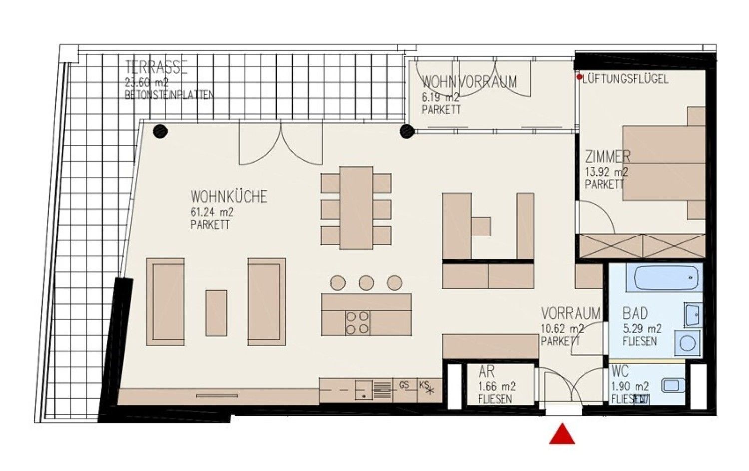 € 1.200/Monat, min. 2 zimmer