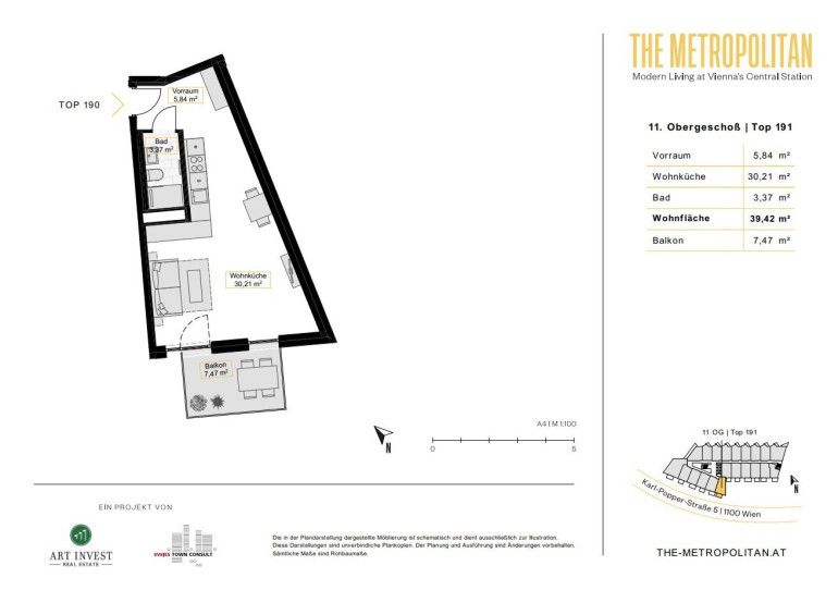 Willkommen in Ihrem neuen urbanen Rückzugsort in Karl-Popper-Straße 5, 1100, Wien! Diese moderne 1 Schlafzimmer-Wohnung bietet einen stilvollen und gemütlichen Lebensraum. Die offene Raumaufteilung eignet sich perfekt für Gäste, und die elegante Küche ist mit erstklassigen Geräten ausgestattet. Dank der erstklassigen Lage sind Sie nur wenige Schritte von den besten Restaurants, Geschäften und Unterhaltungsmöglichkeiten der Stadt entfernt. Mit einem erschwinglichen Preis von € 686 ist diese Wohnung eine fantastische Gelegenheit, das Leben in der Stadt von seiner besten Seite zu genießen. Verpassen Sie nicht die Gelegenheit - vereinbaren Sie noch heute einen Besichtigungstermin!