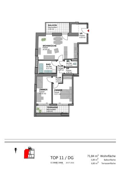 € 800/Monat, min. 3 zimmer