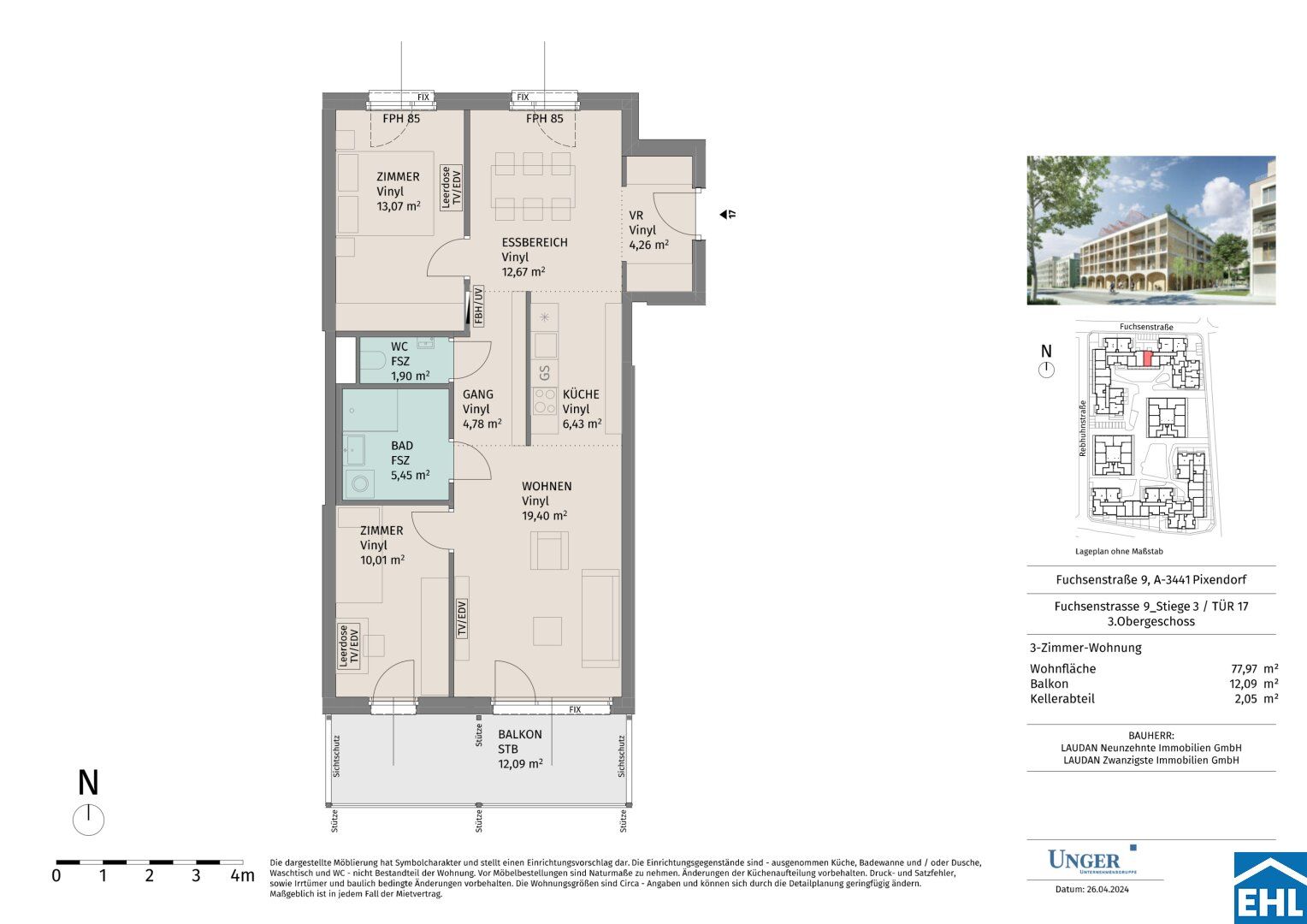 Willkommen in Ihrem neuen urbanen Rückzugsort in Fuchsenstraße, 3451, Pixendorf! Diese moderne 3 Schlafzimmer-Wohnung bietet einen stilvollen und gemütlichen Lebensraum. Die offene Raumaufteilung eignet sich perfekt für Gäste, und die elegante Küche ist mit erstklassigen Geräten ausgestattet. Dank der erstklassigen Lage sind Sie nur wenige Schritte von den besten Restaurants, Geschäften und Unterhaltungsmöglichkeiten der Stadt entfernt. Mit einem erschwinglichen Preis von € 974 ist diese Wohnung eine fantastische Gelegenheit, das Leben in der Stadt von seiner besten Seite zu genießen. Verpassen Sie nicht die Gelegenheit - vereinbaren Sie noch heute einen Besichtigungstermin!