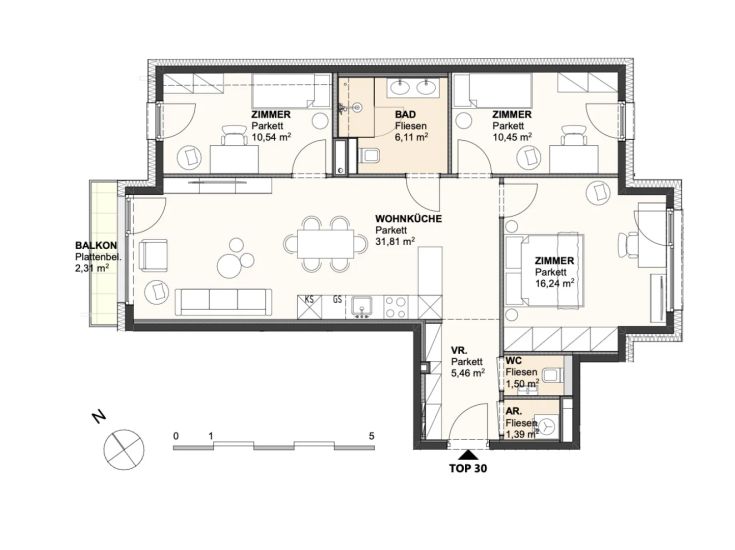 € 1.400/Monat, min. 2 zimmer