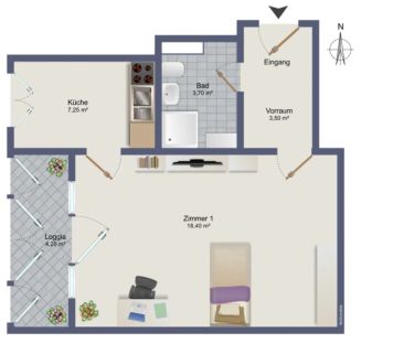Diese schöne 1,5-Zimmer-Wohnung überzeugt mit ihrer to...